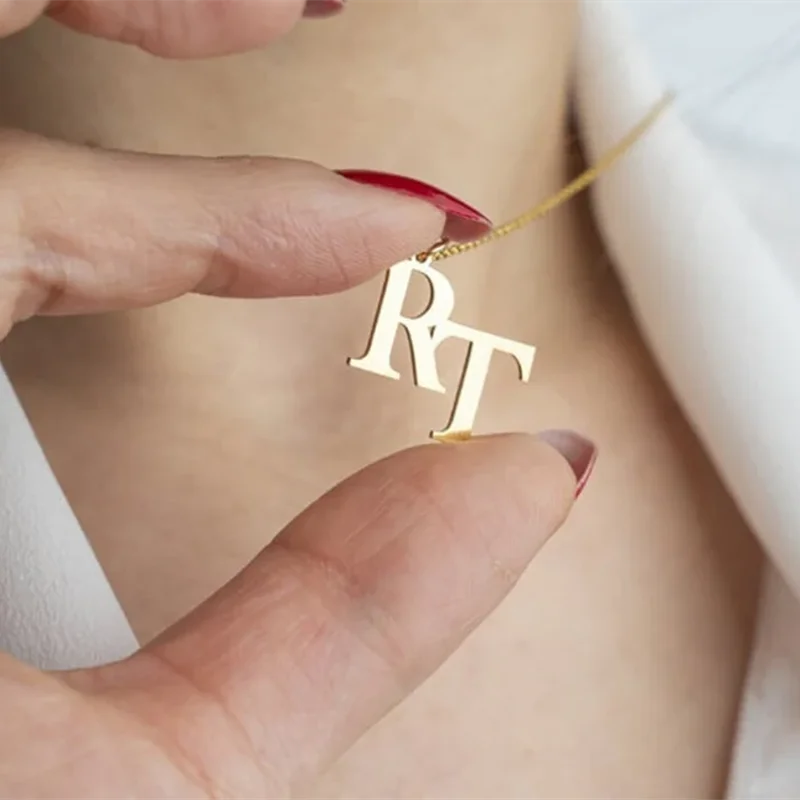 Personalized Gold Color Double Initials Necklace